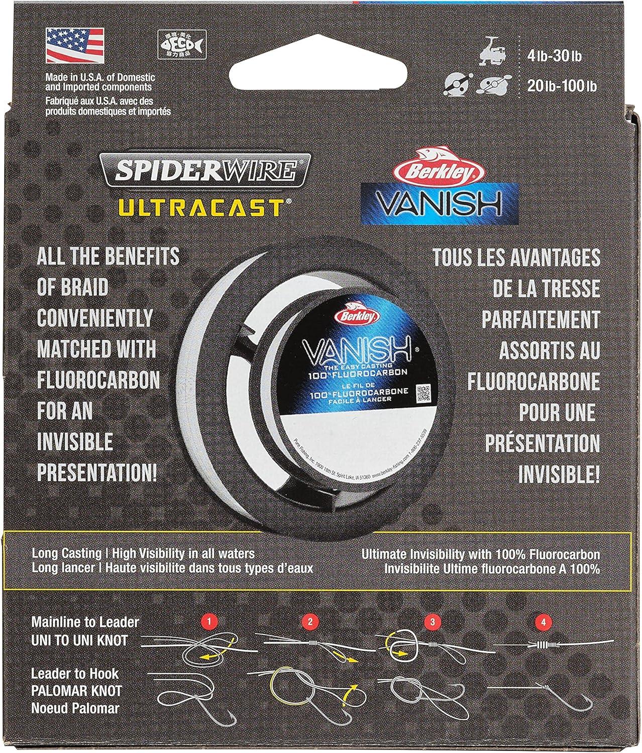 SpiderWire Ultracast Braid Vanish Fluorocarbon Dual Spool, 30lb Translucent Braid with 50lb Clear Fluoro Leader, 164yd | 150m